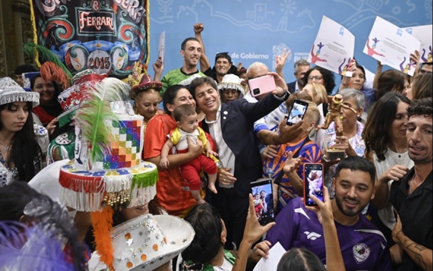En el marco del programa Carnaval es Cultura, el gobernador de la provincia de Buenos Aires, Axel Kicillof, encabezó este martes junto a la presidenta del Instituto Cultural, Florencia Saintout, el acto de entrega de los premios anuales a Proyectos de Desarrollo Artístico y Cultural de las Murgas, Comparsas y Agrupaciones de Carnaval bonaerense.