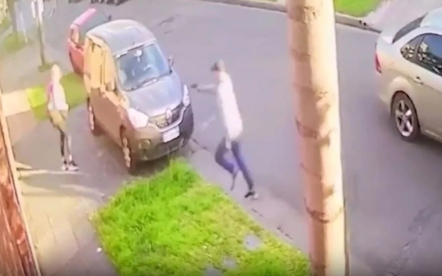 Una camara de seguridad privada registró el momento el que los delincuentes se bajan de un vehiculo y atacan directamente contra la victima.