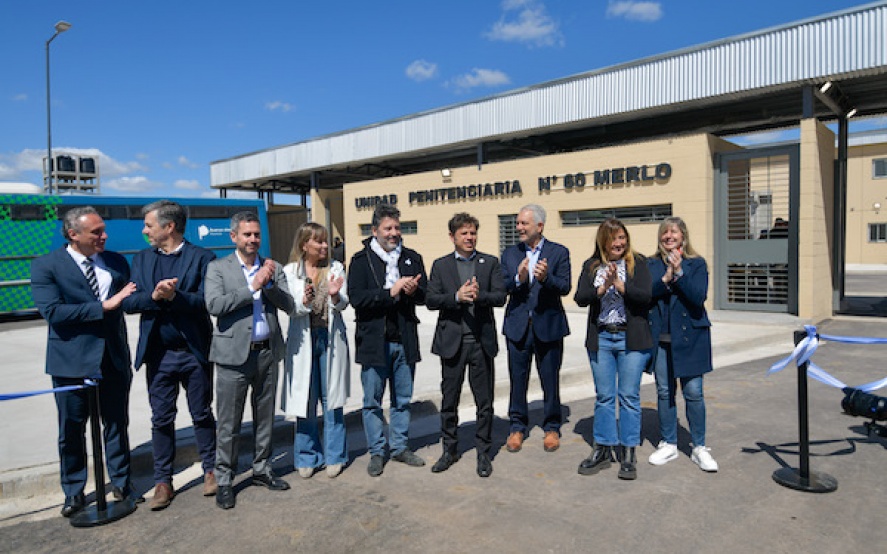 En el marco del Plan de Infraestructura Penitenciaria, el gobernador de la provincia de Buenos Aires, Axel Kicillof, encabezó en Merlo el acto de inauguración de un complejo que incorpora 2.300 plazas distribuidas en celdas de alojamiento. Fue junto al ministro de Justicia y Derechos Humanos, Julio Alak; el presidente del Grupo Provincia, Gustavo Menéndez; y la intendenta local, Karina Menéndez.
