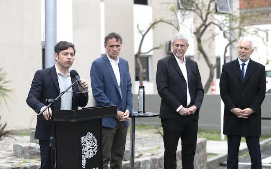 El gobernador de la provincia de Buenos Aires, Axel Kicillof, encabezó este martes el acto de inauguración de las obras de remodelación y ampliación del Anexo Mitre del edificio “Baltazar Garzón”, donde funciona el Departamento Judicial Avellaneda - Lanús. Fue junto al ministro de Obras Públicas de la Nación, Gabriel Katopodis; el ministro de Justicia y Derechos Humanos, Julio Alak; y el intendente local, Jorge Ferraresi.