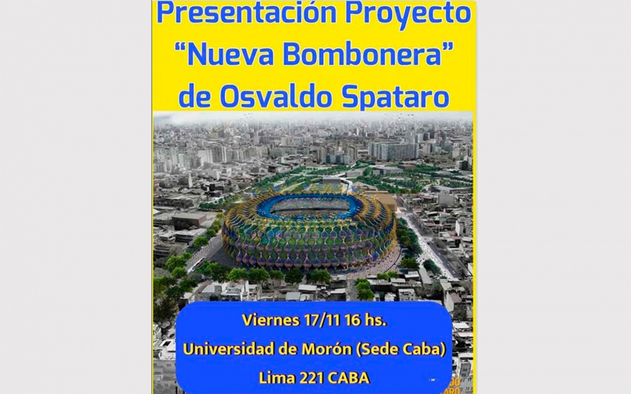 El dÃa viernes 17 de noviembre  A las 16 hs , en Lima 221 caba junto al rector de la facultad de Arquitectura y Urbanismo de la Universidad de Morón se presenta el proyecto de la nueva bombonera del ex tesorero Osvaldo Spataro.