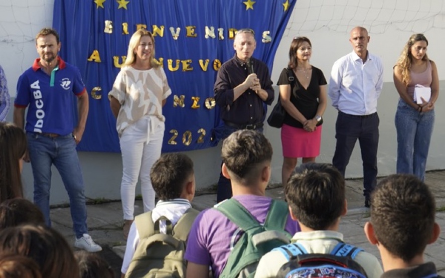 El intendente de Esteban Echeverría, Fernando Gray, participó del acto de inicio del ciclo lectivo 2025 en la Escuela Secundaria N° 33 de Monte Grande Sur. El miércoles 5 de marzo comenzaron las clases más de 65.000 estudiantes en todos los establecimientos educativos del distrito.