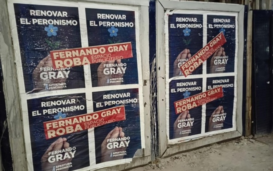 Los afiches salieron a la luz en medio del escenario que planteó la proscripción de Cristina Kirchner y la posterior aceleración de los contactos entre los distintos sectores peronistas en busca de unidad de cara a las elecciones en la provincia de Buenos Aires y las nacionales de octubre. Gray llama en los carteles a "renovar el peronismo".