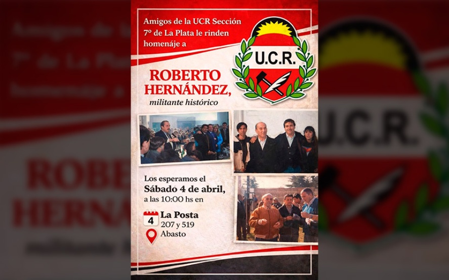 La Sección 7° de la Unión Cívica Radical de La Plata, a través de sus “Amigos de la UCR”, rendirá un sentido homenaje a Roberto Hernández, reconocido militante histórico del partido. El evento busca reconocer su trayectoria y compromiso con los valores radicales a lo largo de los años.